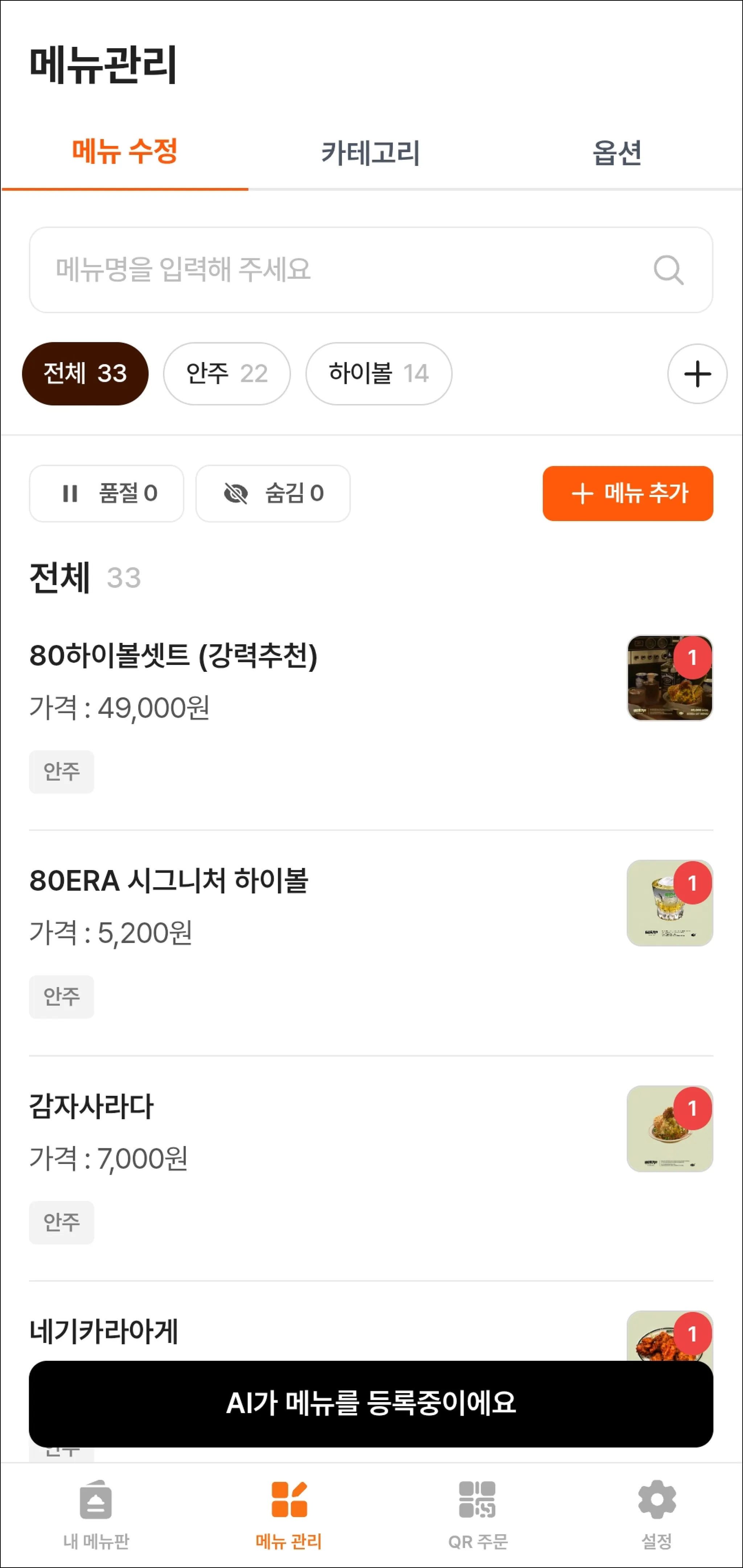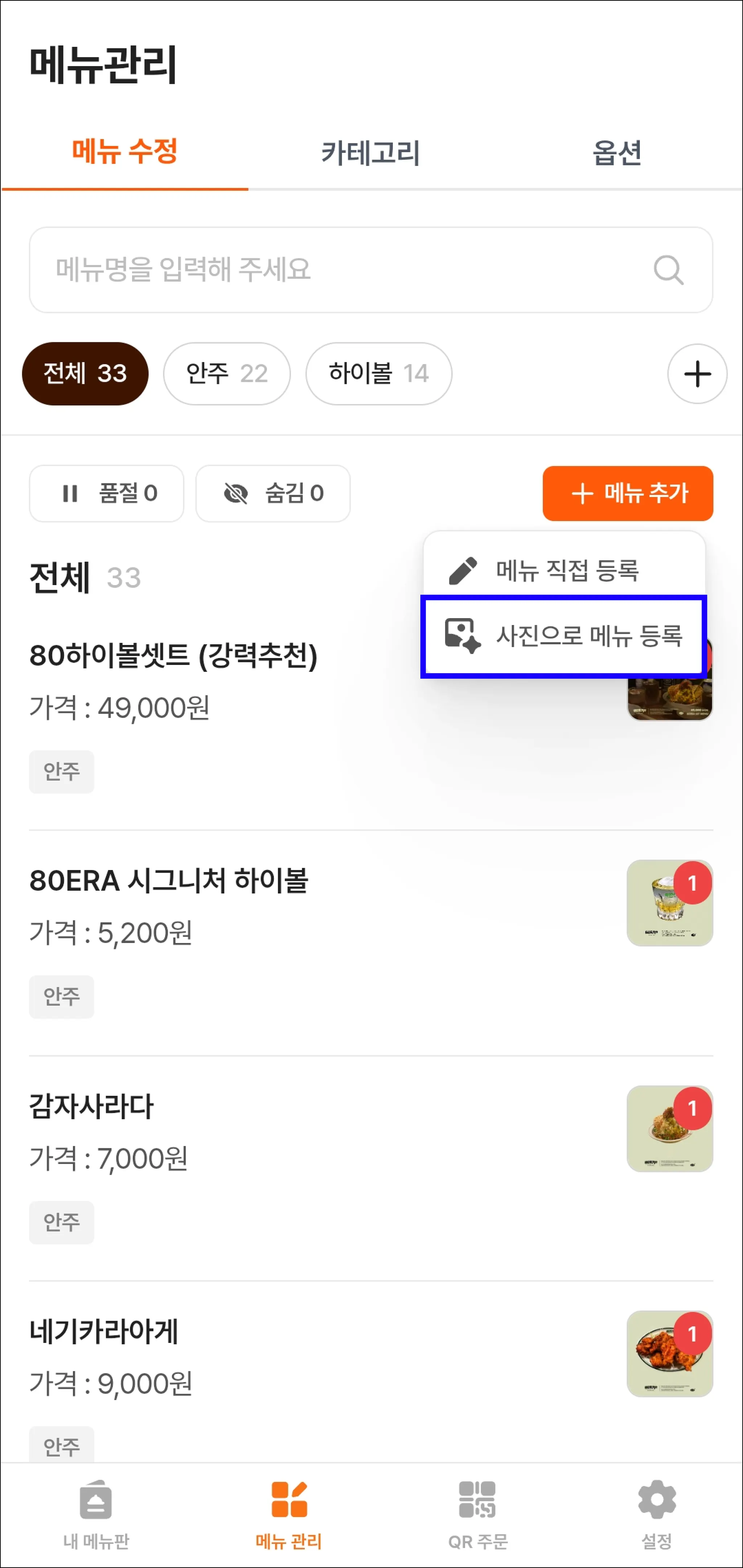 사진 속 메뉴가 메뉴판에 등록됩니다.