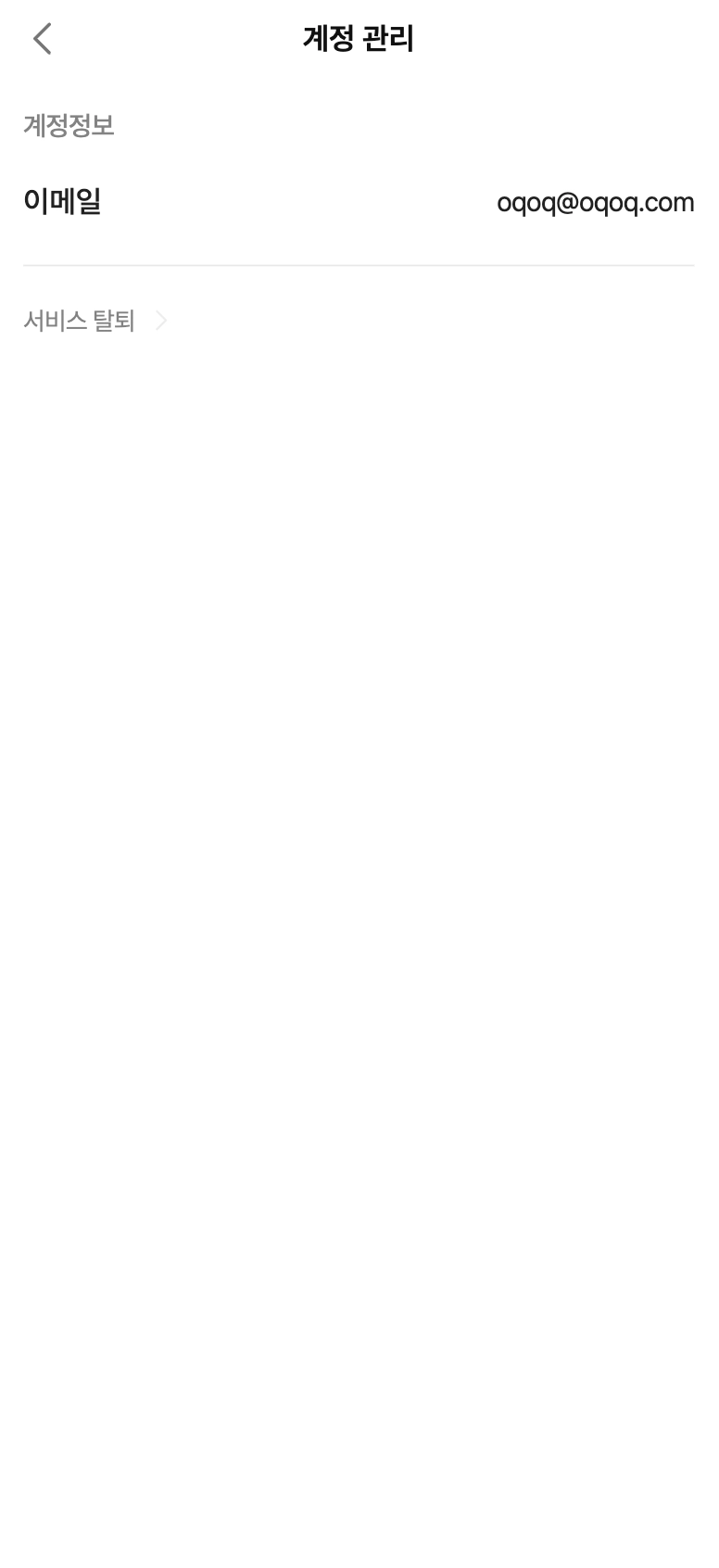[설정] → [계정관리]에서, [서비스 탈퇴] 버튼을 클릭하세요.