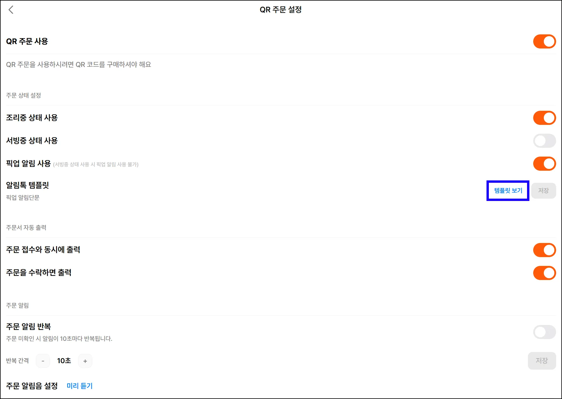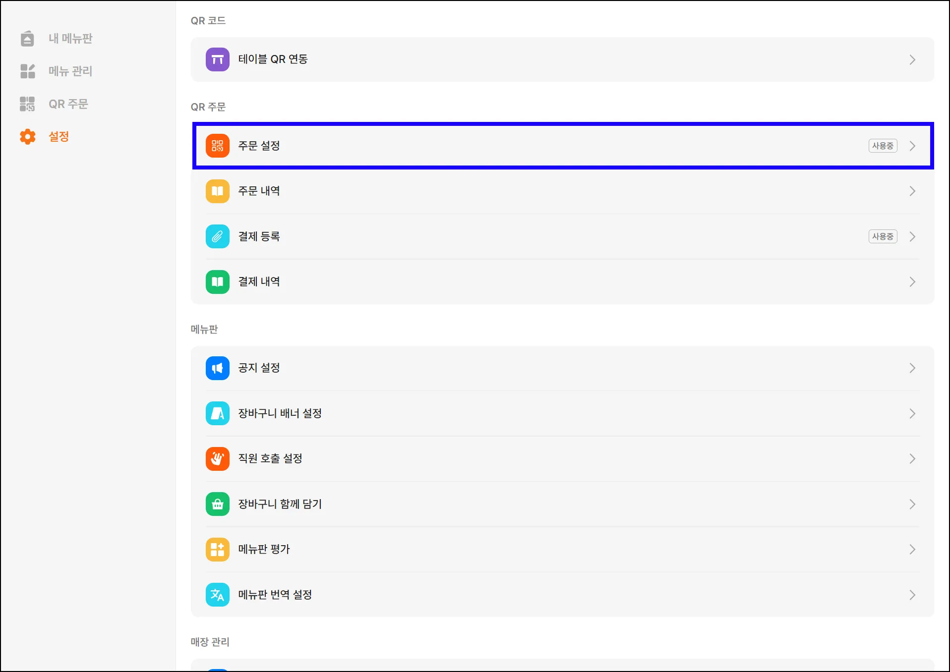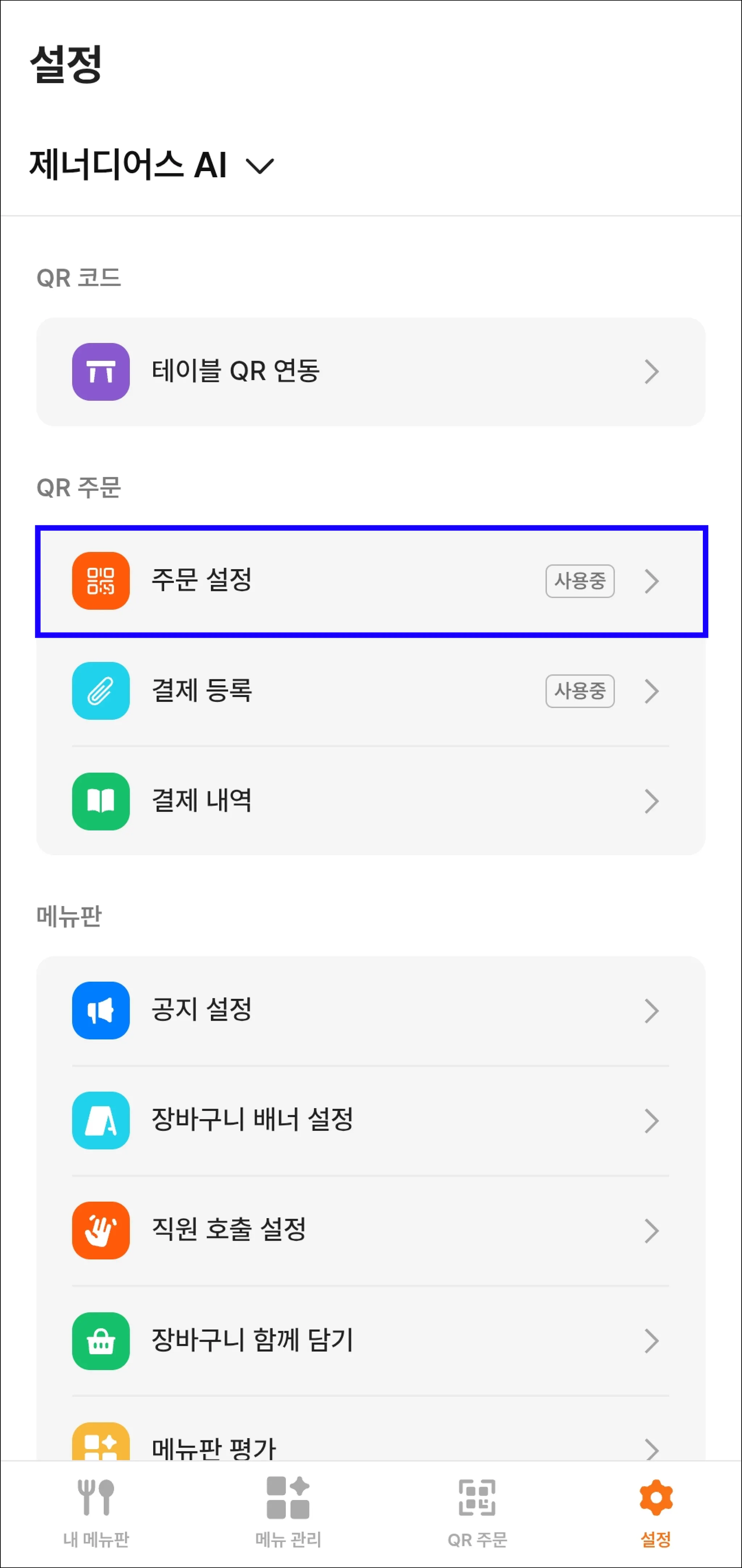 [설정] > [주문 설정] 메뉴에 들어가세요.