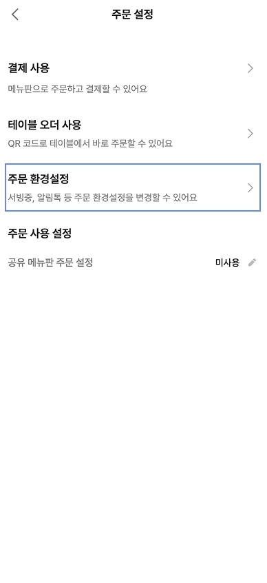 [설정] → [주문 설정] → [주문 환경설정] 을 클릭합니다.