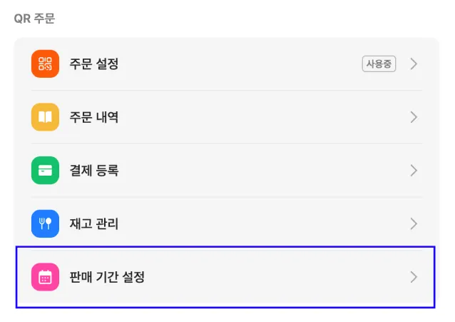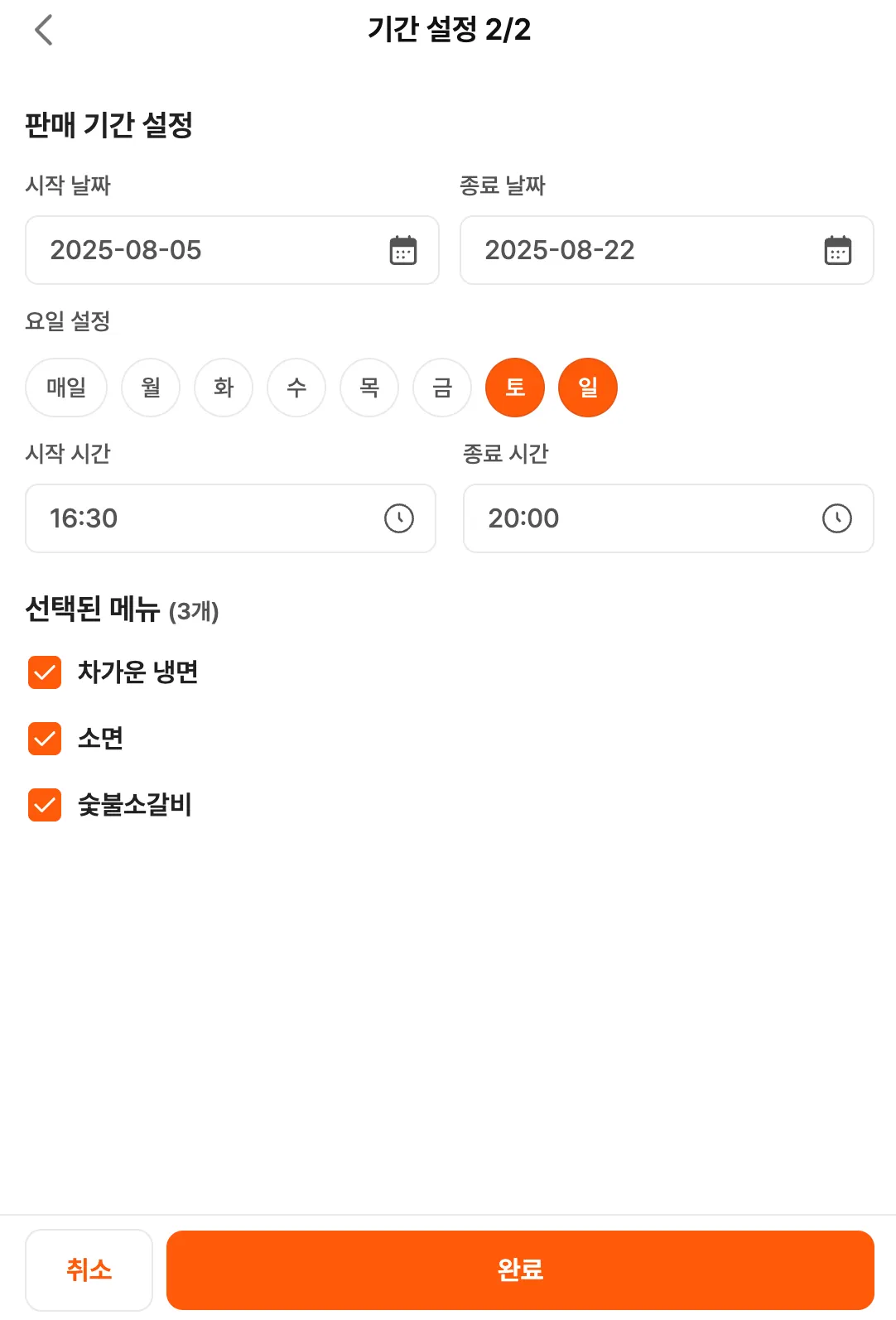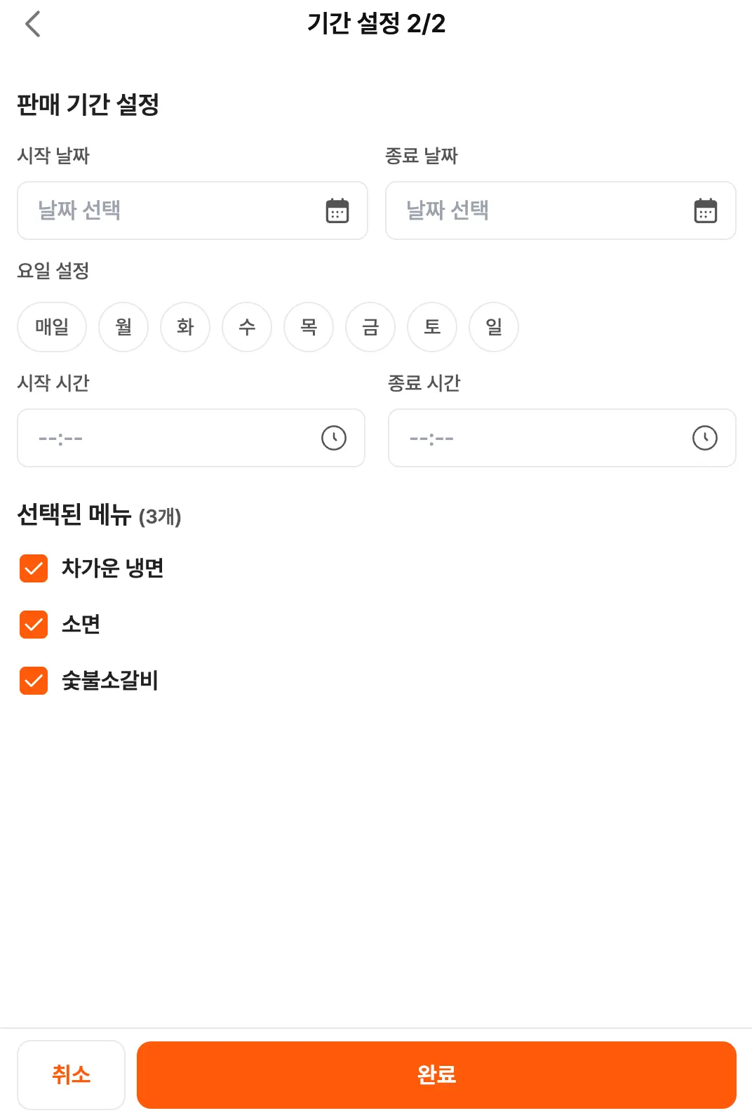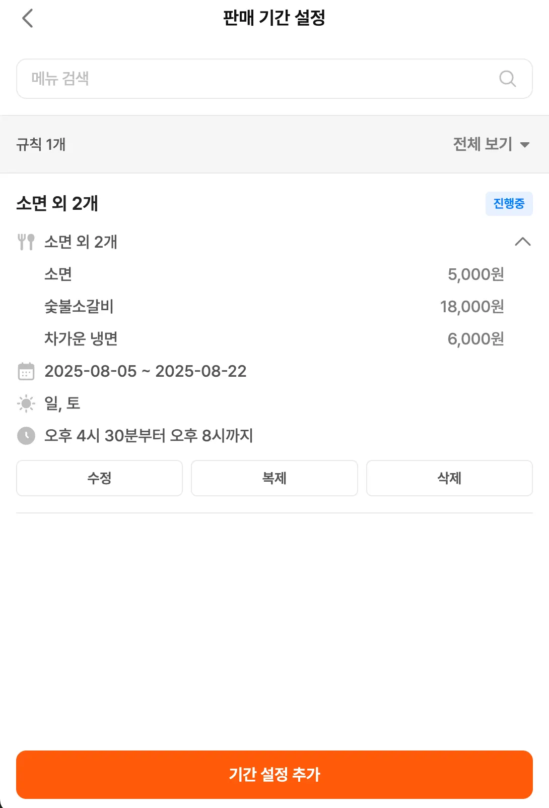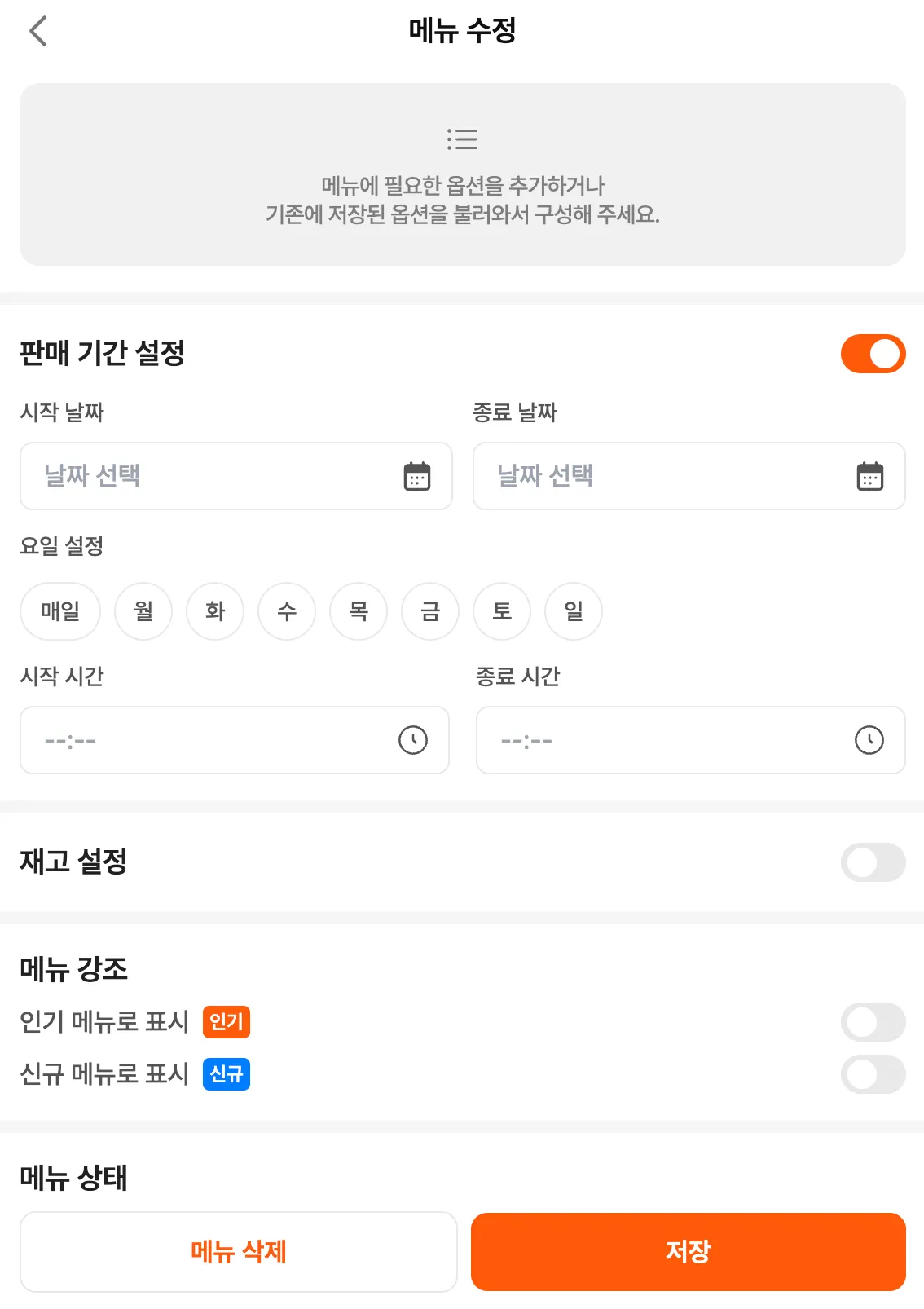 메뉴 수정에서도 판매 기간을 설정, 수정할 수 있습니다.