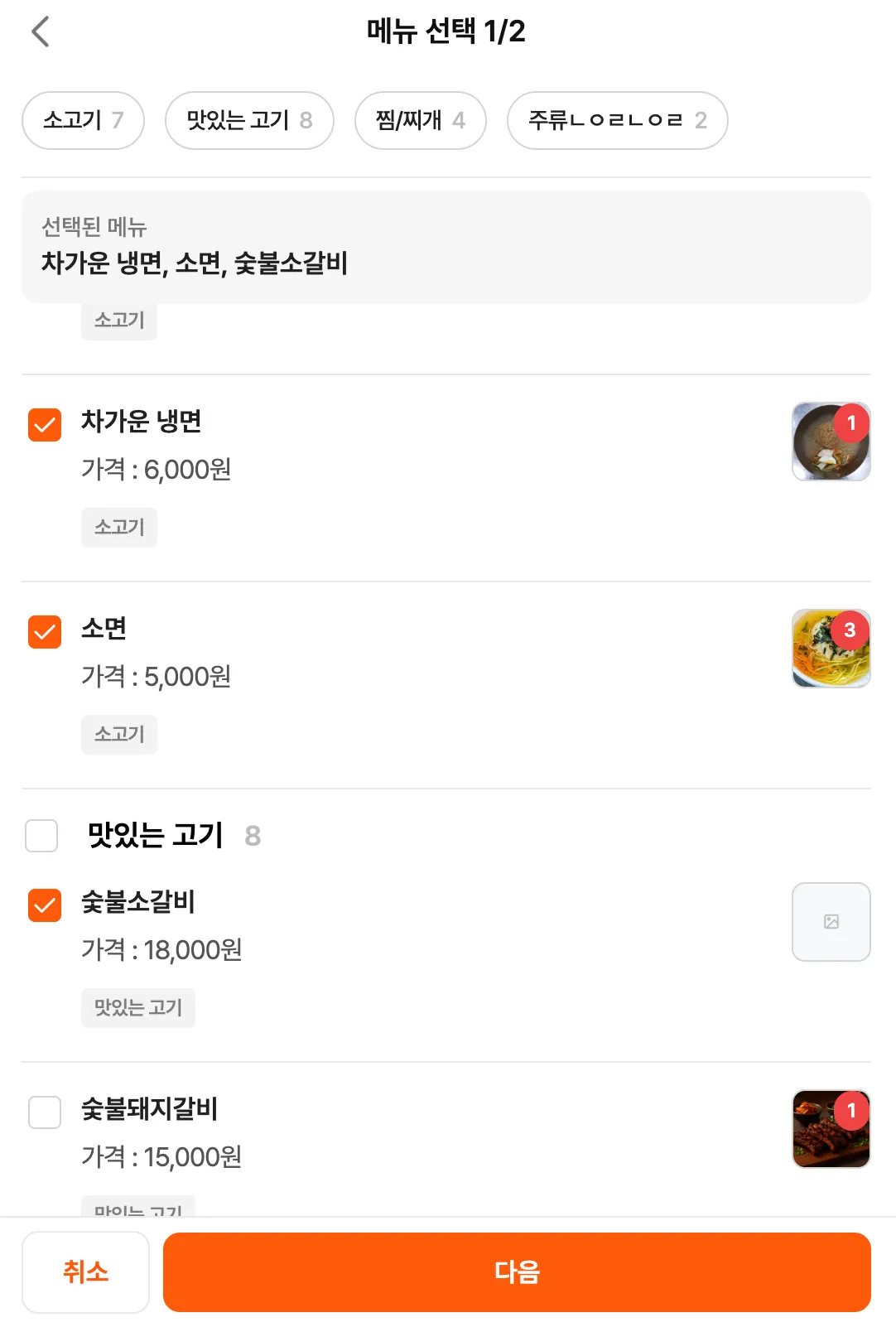 메뉴 리스트에서 판매 기간을 설정하고 싶은 메뉴를 선택하고 [다음] 버튼을 클릭합니다.