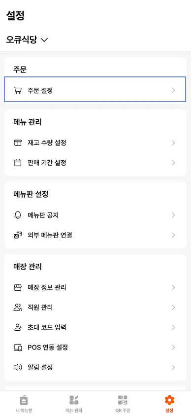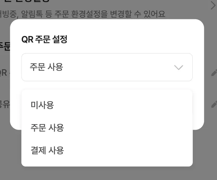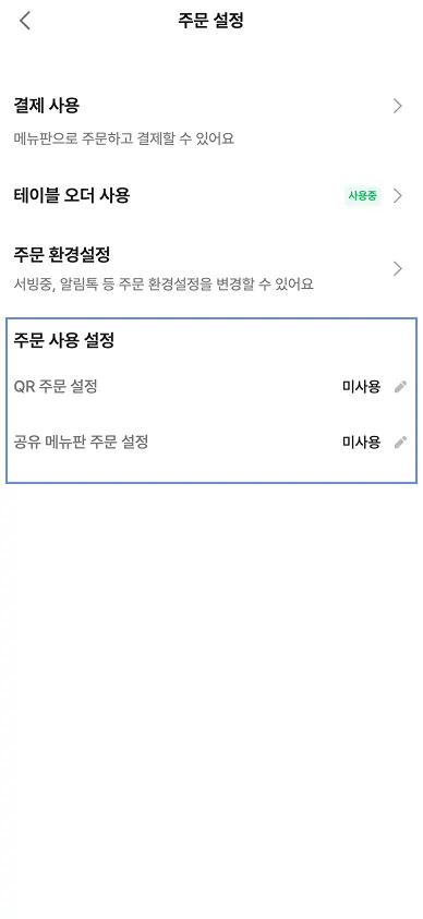 미사용: 손님이 메뉴판을 확인할 수 있지만 주문은 할 수 없습니다.